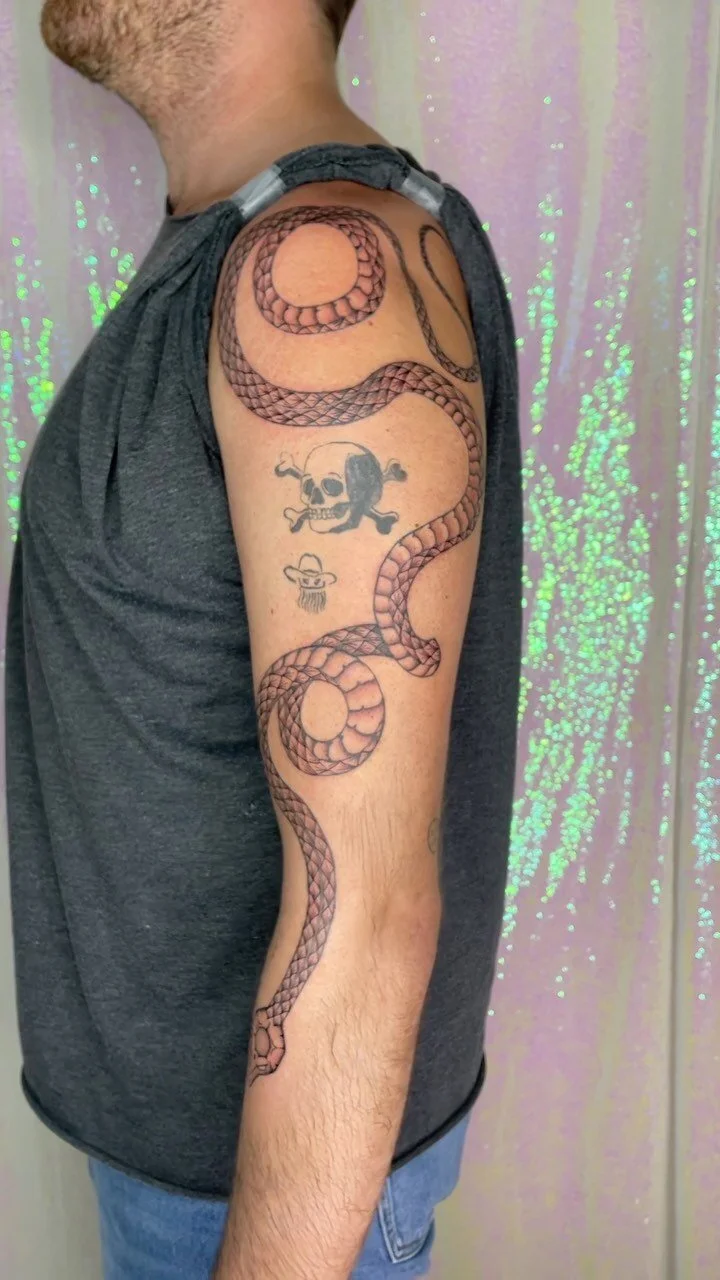 I’m Mikki Reeve (she/her) and I’m a tattoo artist based in Salt Lake City, UT at Perennial Tattoo Studio. My style is black and grey illustrative with heavy focus on skeletons and animals. I have a background in visual and performing arts which loads my tattoos with emotion and pleasing lines from a dancer’s eye. My artistic expression is also influenced by my world travels from Scotland to Malaysia.